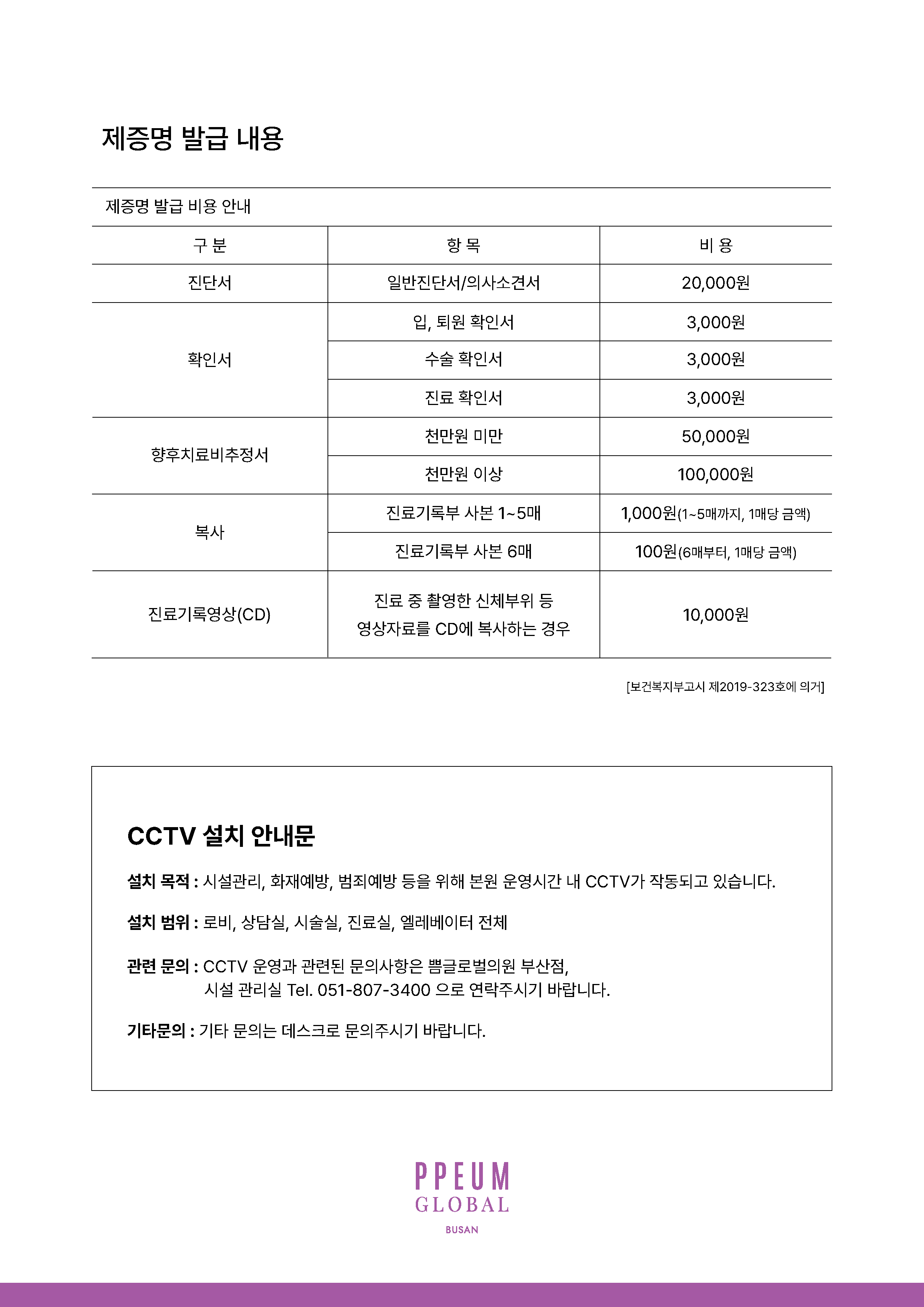 [글로벌 부산점] 제증명발급 비용안내