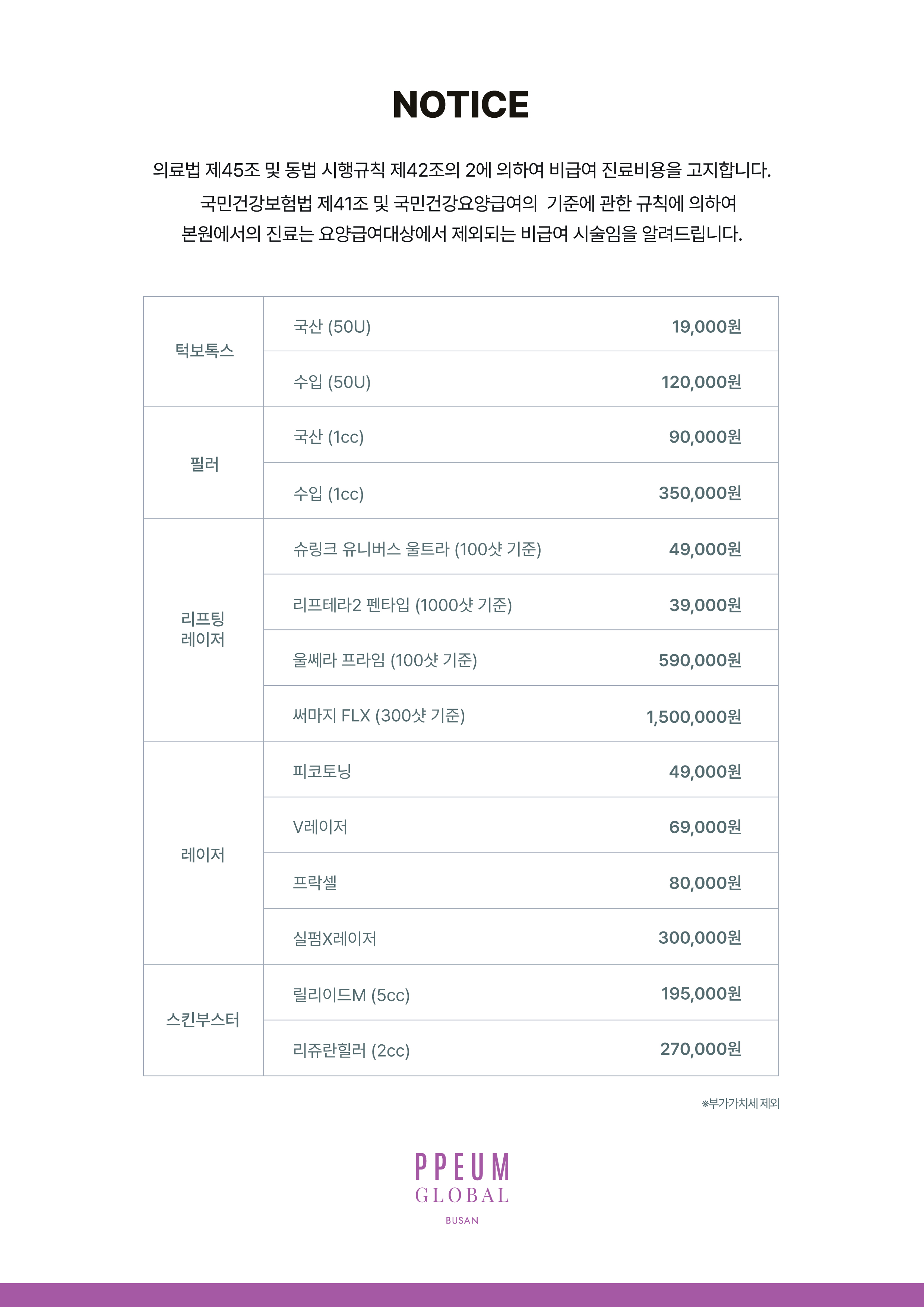 [글로벌 부산점] 비급여 진료비용 안내